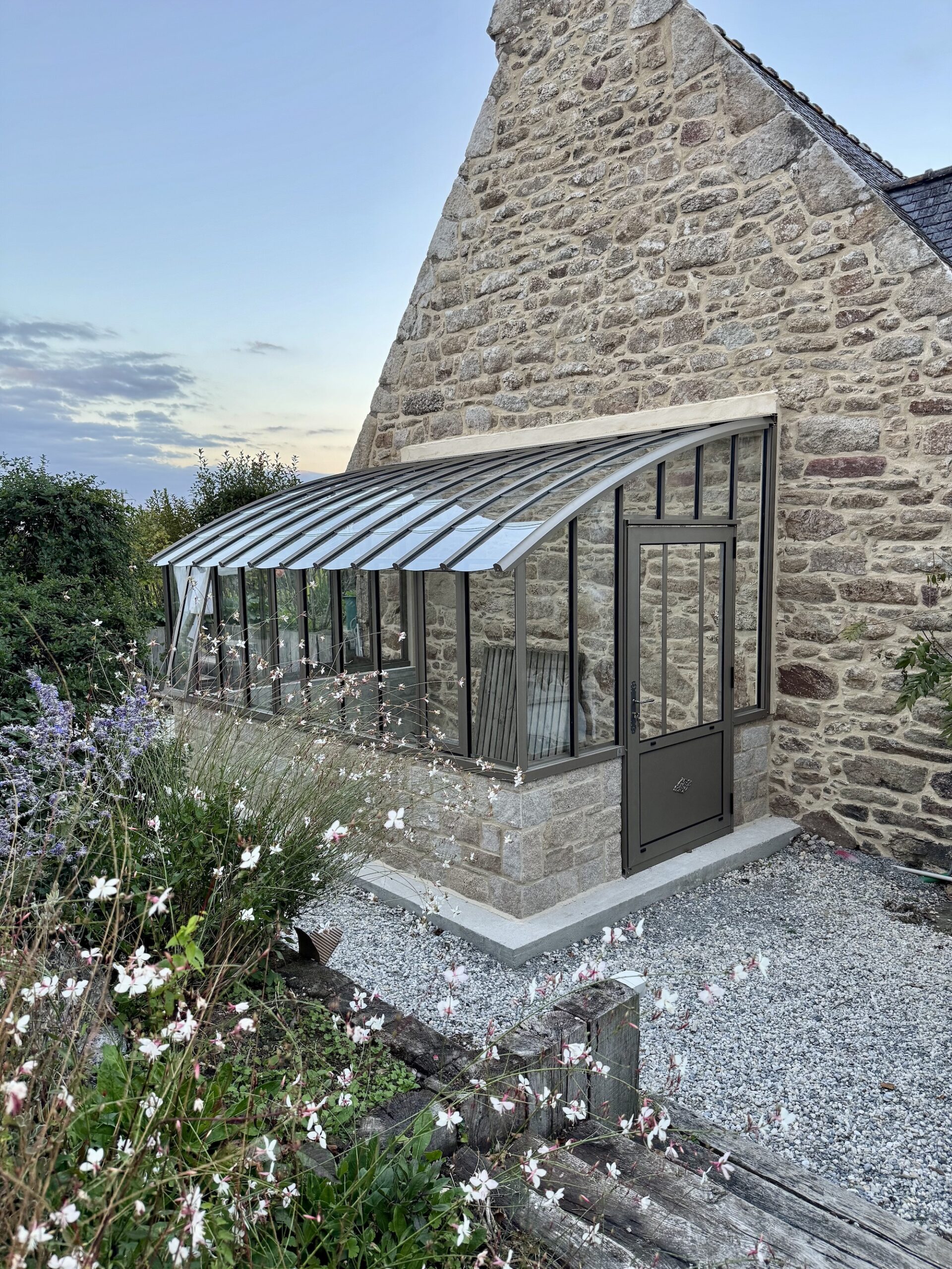 Serre à l'ancienne monopente sur muret - Verre / Aluminium