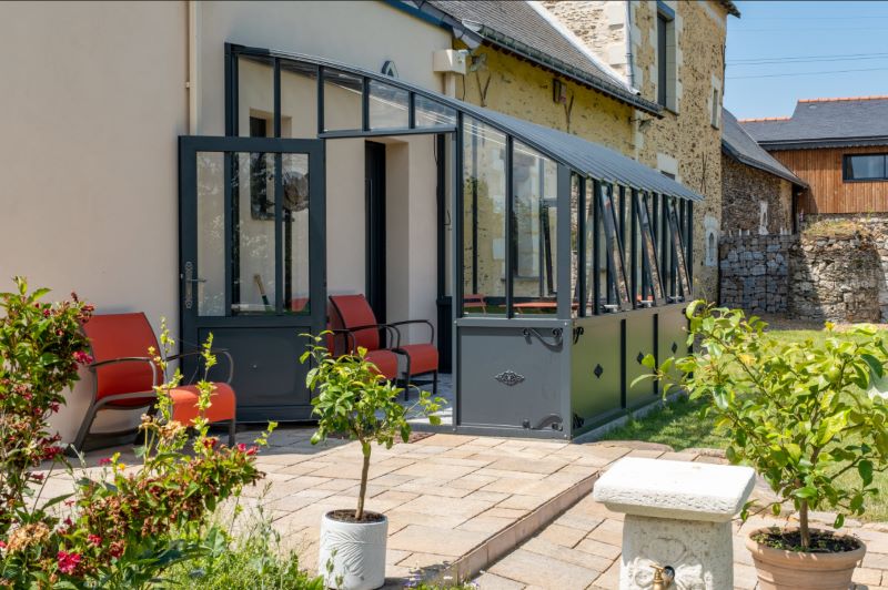 Juin 2021 – Implantation d’une serre style fer forgé avec soubassement – St Sylvain d’Anjou (49-Maine et Loire).